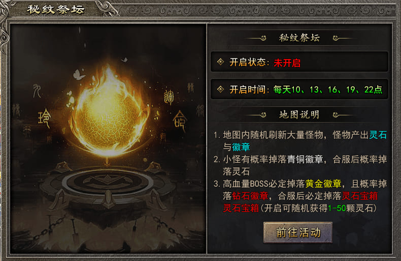- 远古征伐:跨服团队挑战,击败首领可获得符印核心与极品装备。