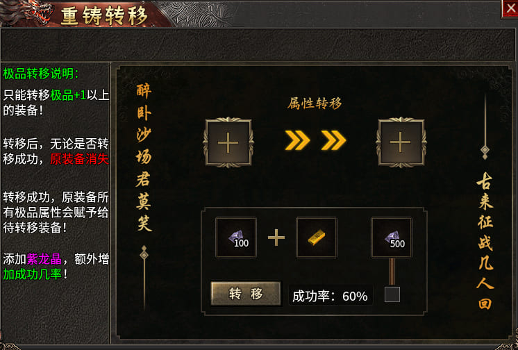 - 斗笠、勋章、龙纹石:可通过庄园锻造 NPC 进行合成升级,属性随阶级提高而提升。
