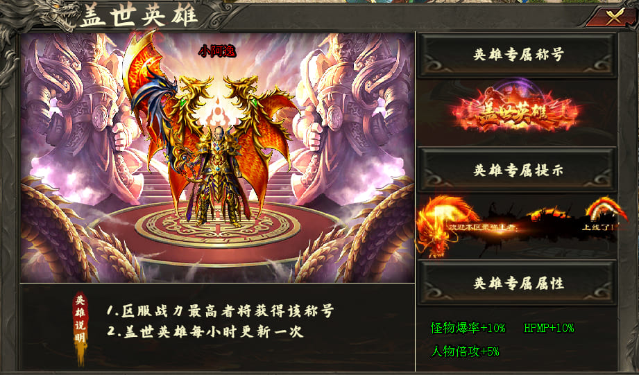 - 勇者试炼场:层层挑战副本,击败BOSS可提升个人称号与永久属性。